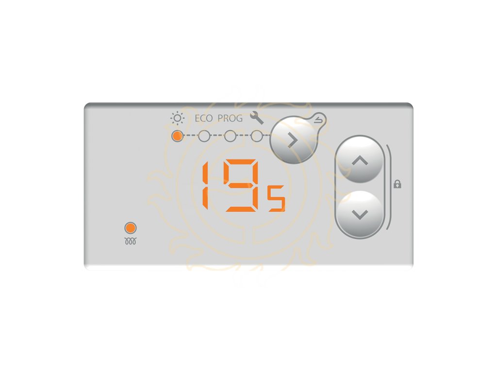 Konvektor je vybaven elektronickým termostatem s týdenním programem, adaptivním startem, funkcí "Detekce otevřeného okna" a zámkem ovládacích prvků (tzv. dětská pojistka - zamknutí/odemknutí vyžaduje kombinovaný stisk ovládacích tlačítek). Termostat lze přepínat mezi čtyřmi provozními režimy: