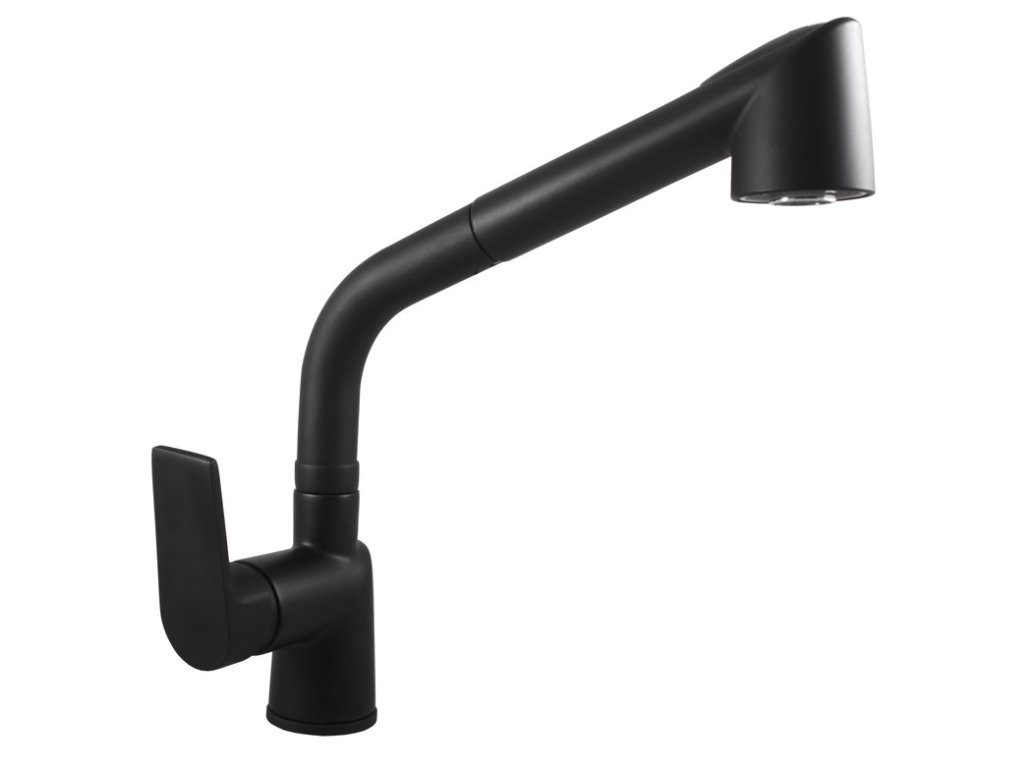 Vodovodní baterie dřezová stojánková s otočným ústím a vytahovací sprchou.