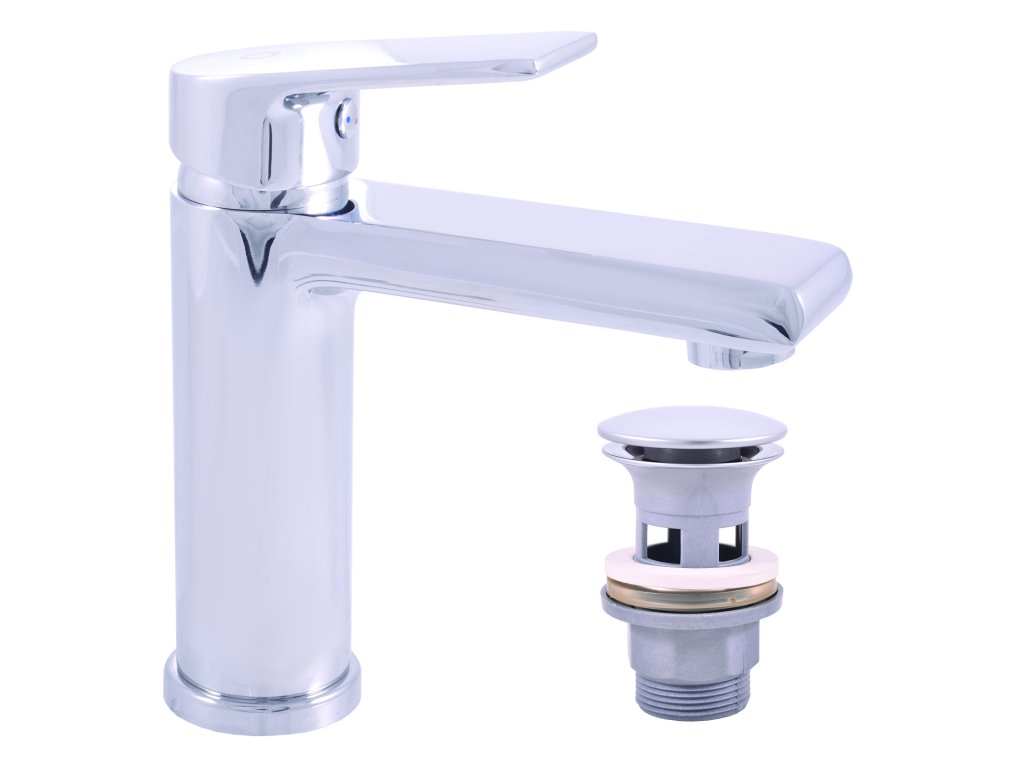 Vodovodní baterie umyvadlová stojánková s výpustí click-clack - kov/plast.