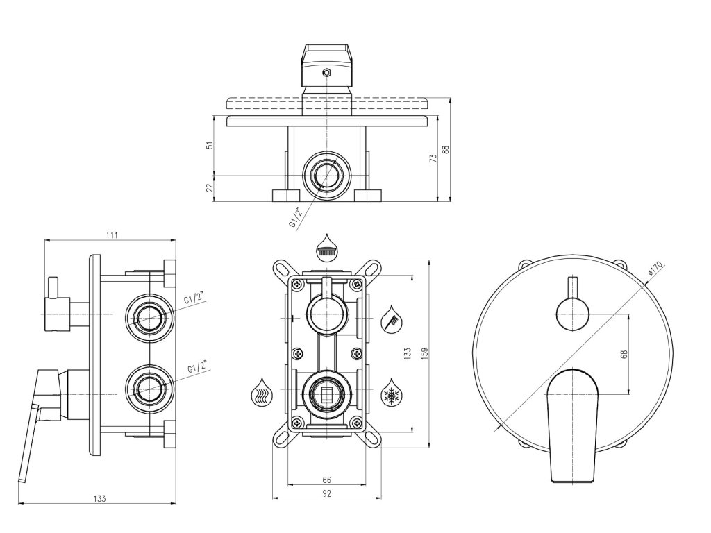 Tuto baterii můžete použít buď do sprchového koutu jako kombinaci hlavové a ruční sprchy a nebo k vaně jako kombinaci např. napouštění přepadem a ruční sprcha nebo výtokové ramínko a ruční sprcha.