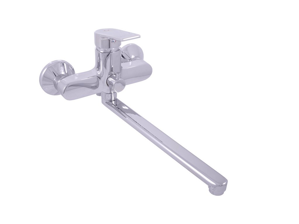 Vodovodní baterie pro vanu a umyvadlo nástěnná s plochým, otočným ramínkem.