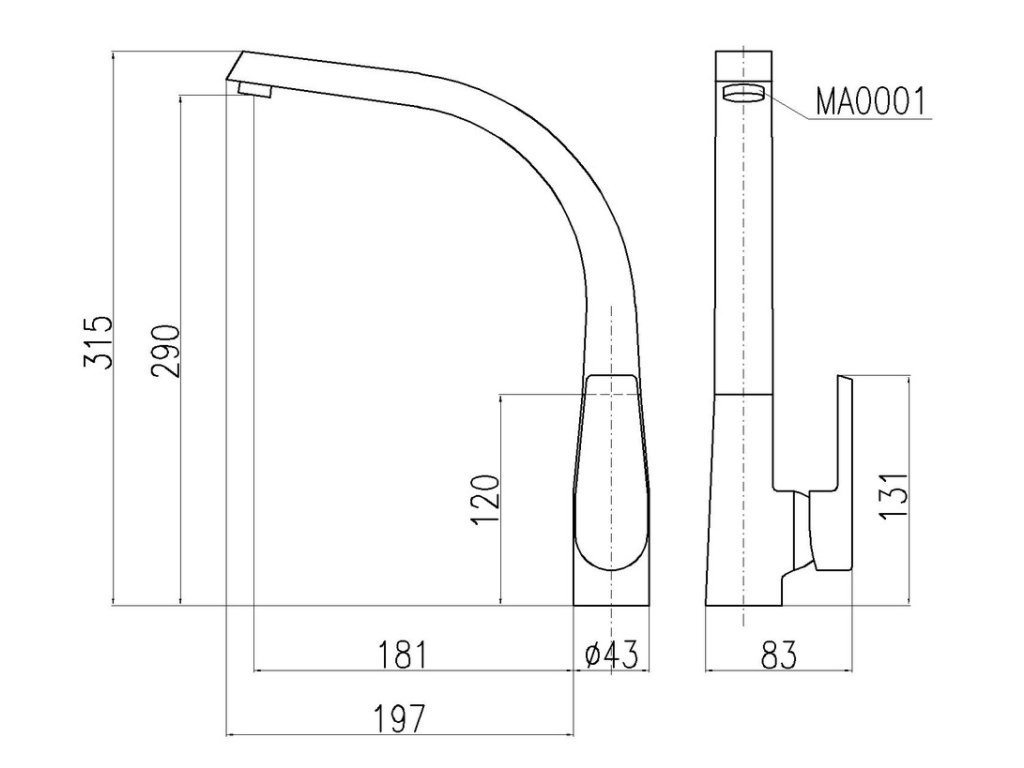 Vodovodní baterie dřezová stojánková s otočným ústím.