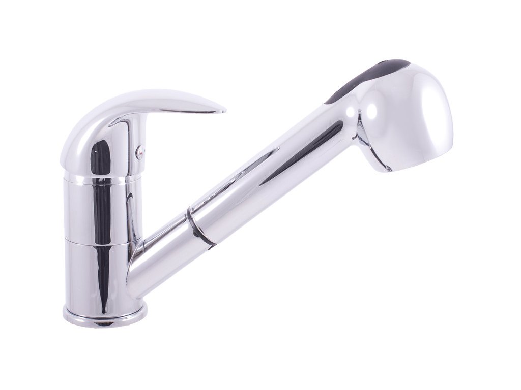 Vodovodní baterie dřezová stojánková s vytahovací sprchou pro nízkotlaké ohřívače.