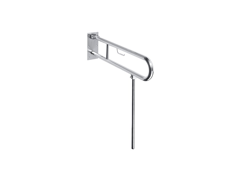 HELP: Sklopný úchyt ve tvaru U s opěrnou nohou a držákem TP 750 mm, nerez, lesk, bez krytky