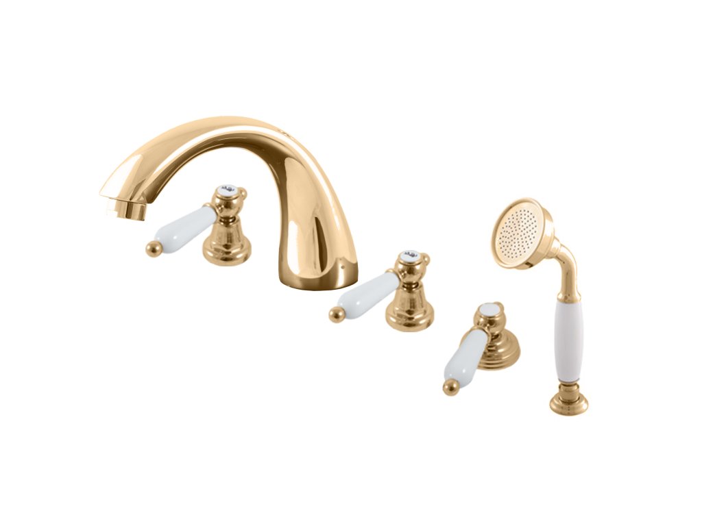 MORAVA RETRO - Vanová baterie 4-otvorová, Zlatá lesklá MK569.0PZ, RAV Slezák
