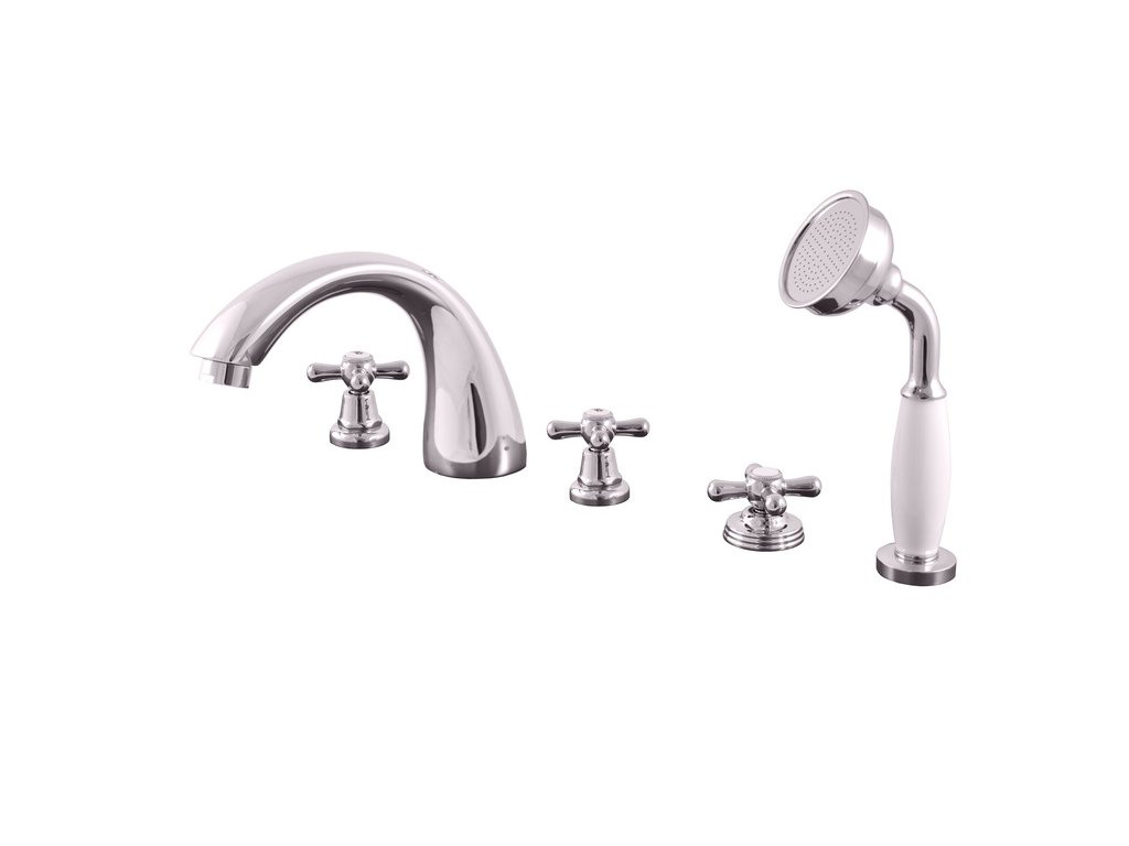 Vodovodní baterie vanová stojánková pětiotvorová s keramickým přepínačem, samonavíjecí sprchou a 2m hadicí.