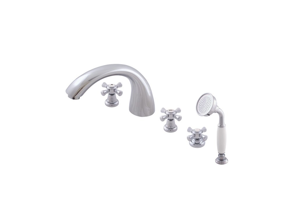 Vodovodní baterie vanová stojánková pětiotvorová s keramickým přepínačem, samonavíjecí sprchou a 2m hadicí.