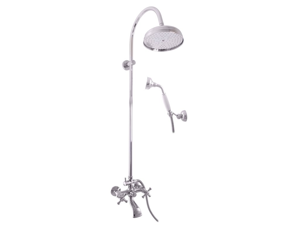Vodovodní baterie vanová MORAVA RETRO s hlavovou a ruční sprchou se skládá z: