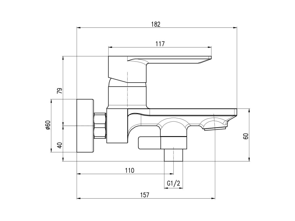 - Vodovodní baterie vanová nástěnná se sprchou a pevným kovovým držákem.