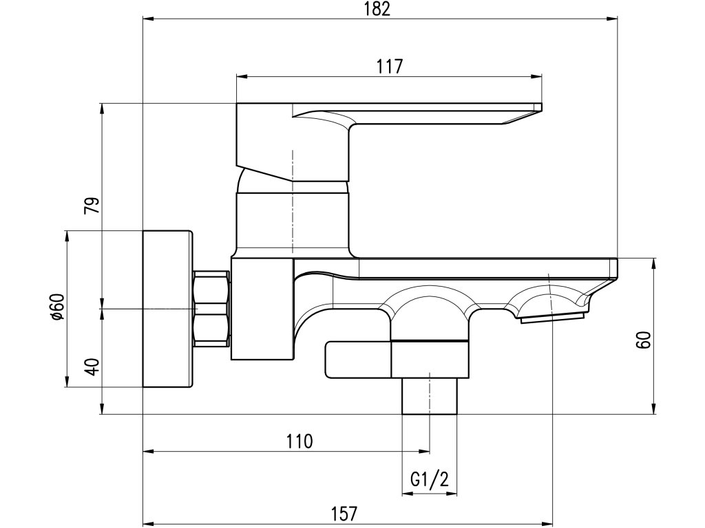 - Vodovodní baterie vanová nástěnná se sprchou a pevným kovovým držákem.