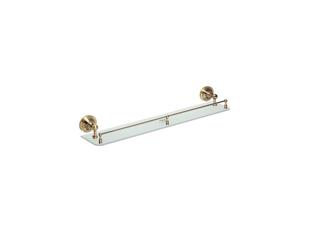 RETRO bronz: Polička skleněná s hrazdou, 600 mm