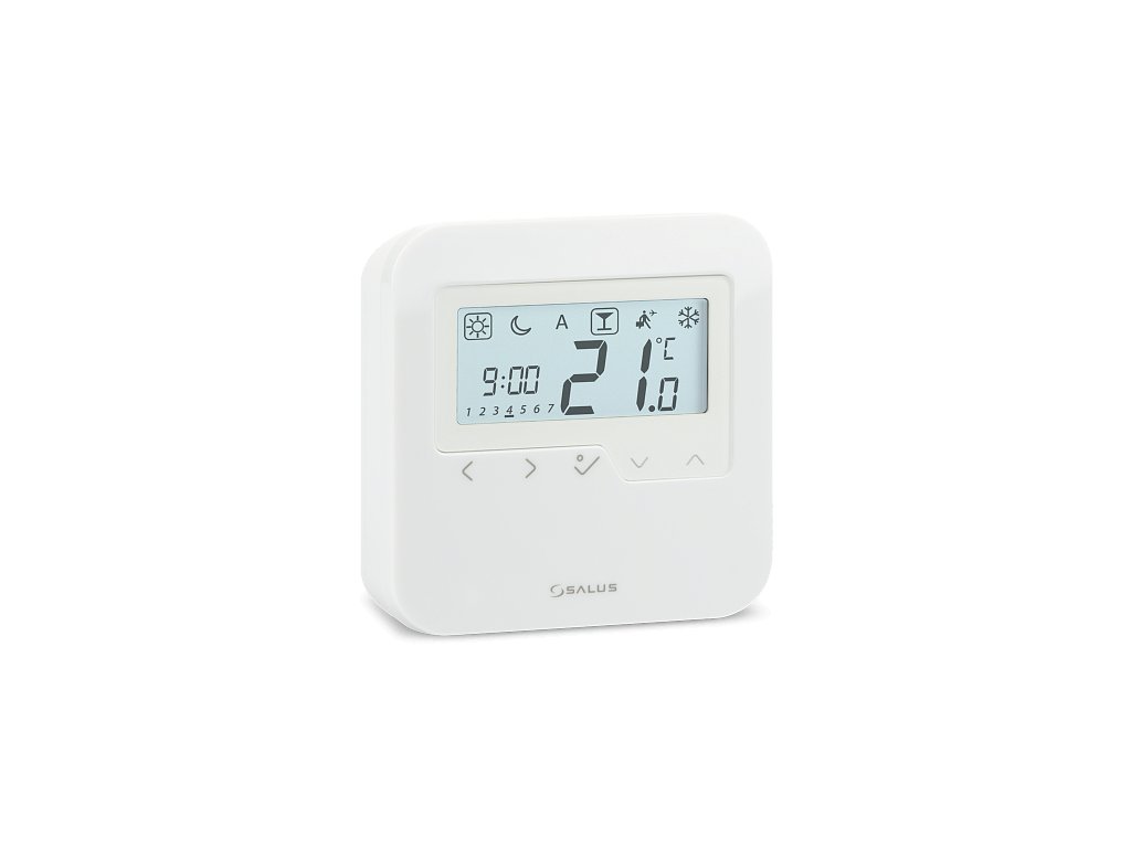 Nástěnný pokojový termostat SALUS HTRP24 je vhodný k regulaci podlahového vytápění / chlazení. Umožňuje značnou úsporu díky možnosti přesné kontroly požadované teploty a udržování stálé teploty v místnosti s tepelnou setrvačností. Termostat musí být připojen k centrální svorkovnici, pomocí níž může ovládat denní termostaty – signál NSB je přepne na ekonomickou teplotu. Termostat umožňuje vytvářet vlastní harmonogramy teplotních změn, které jsou pak společné pro všechny termostaty (v závislosti na týdenním termostatu). Teploty se nastavují individuálně na každém termostatu.Základní vlastnosti: