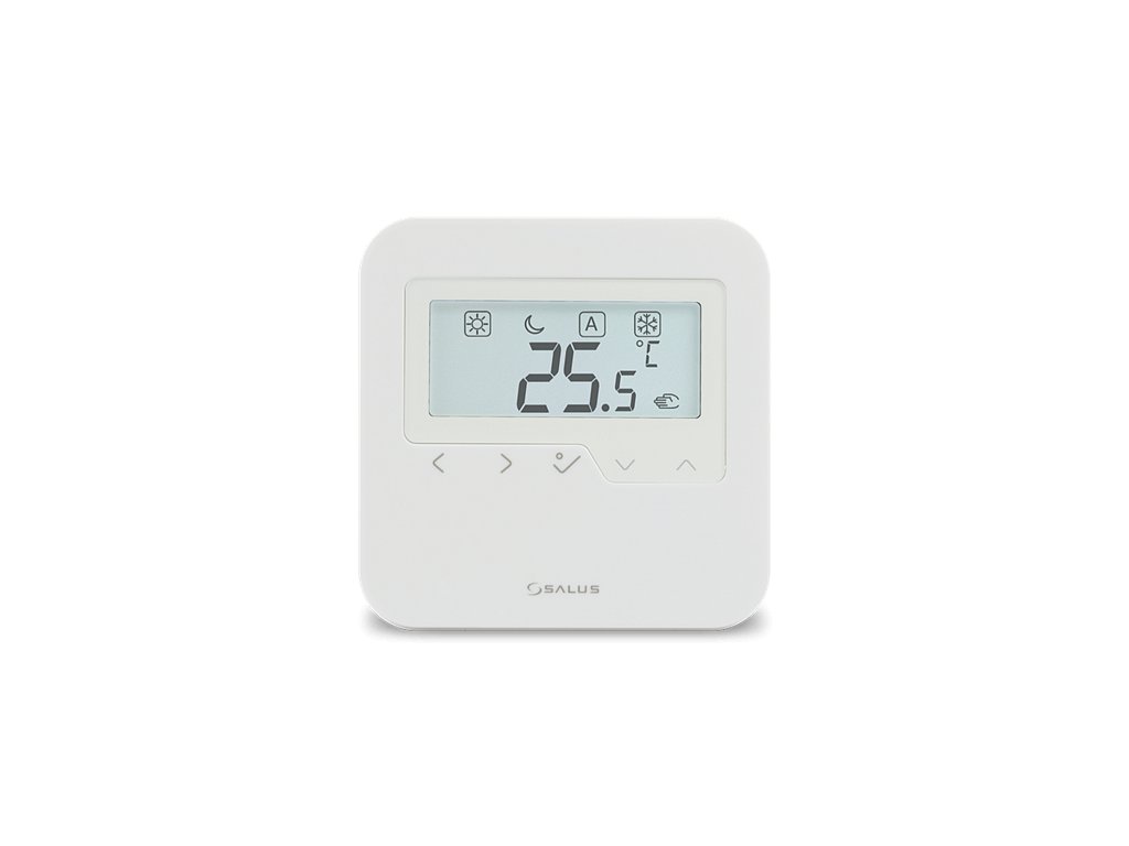 SALUS HTRS230 je nástěnný pokojový termostat vhodný k regulaci podlahového vytápění / chlazení. Umožňuje značnou úsporu díky možnosti přesné kontroly požadované teploty a udržování stálé teploty v místnosti s tepelnou setrvačností. Termostat lze připojit k centrální svorkovnici. Termostat nemá možnost vytvářet vlastní harmonogramy teplotních změn – změna teploty pouze podle příkazu z programovatelného termostatu prostřednictvím centrální svorkovnice.Základní vlastnosti: