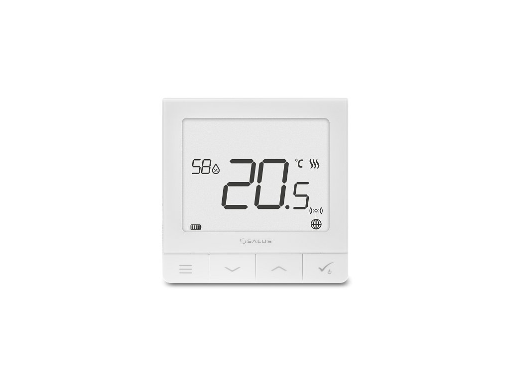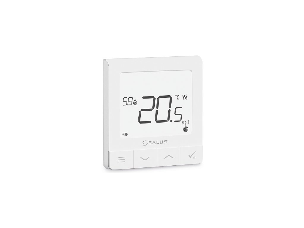 Ultratenký – tloušťka jen 11 mm Integrovaná baterie – na jedno nabití vydrží 1 – 2 roky Čitelný displej s podsvícením Intuitivní menu Senzor vlhkosti Režim dovolená Přizpůsobitelná obrazovka displeje Výběr řídícího algoritmu: ITLC, Hystereze ±0,5 °C nebo ±0,25 °C, termoelektrický pohon THB Funkce ochrana ventilů Optimalizační funkce Možnost výběru z 22 jazyků TERMOSTATY SALUS SQ610RF JSOU IDEÁLNÍM ŘEŠENÍM PRO PRONAJÍMATELE A HOTELY: Funkce uzamčení vlastním PIN kódem.Možnost nastavení limitů pro rozsah požadovaných teplot.Přes vstupy S1 a S2 je možné připojení dalších prvků, jako například: Venkovní čidlo teploty vzduchu Přídavný snímač teploty podlahy Senzor obsazenosti pokoje Spínač světel (nebo jakýkoli jiný kontakt ON / OFF) Vyhrazený přepínač, který může být naprogramován tak, aby spouštěl výchozí pravidla, scénáře, poslal PUSH notifikaci nebo e-mail atd. Přepínač režimu VYTÁPĚNÍ / CHLAZENÍ Funkce Komfort TEPLÉ PODLAHYTato funkce umožňuje udržovat teplou podlahu bez ohledu na tepelný komfort v místnosti. Například v koupelně, kde je teplá podlaha pro uživatele důležitější než celková teplota. Aktivujte funkci s ohledem na své pohodlí volbou jedné ze tří úrovní komfortu. Lze použít pouze v systému SALUS Smart Home. Ovládání přes aplikaci SALUS Premium Lite a bránu SALUS UG800.