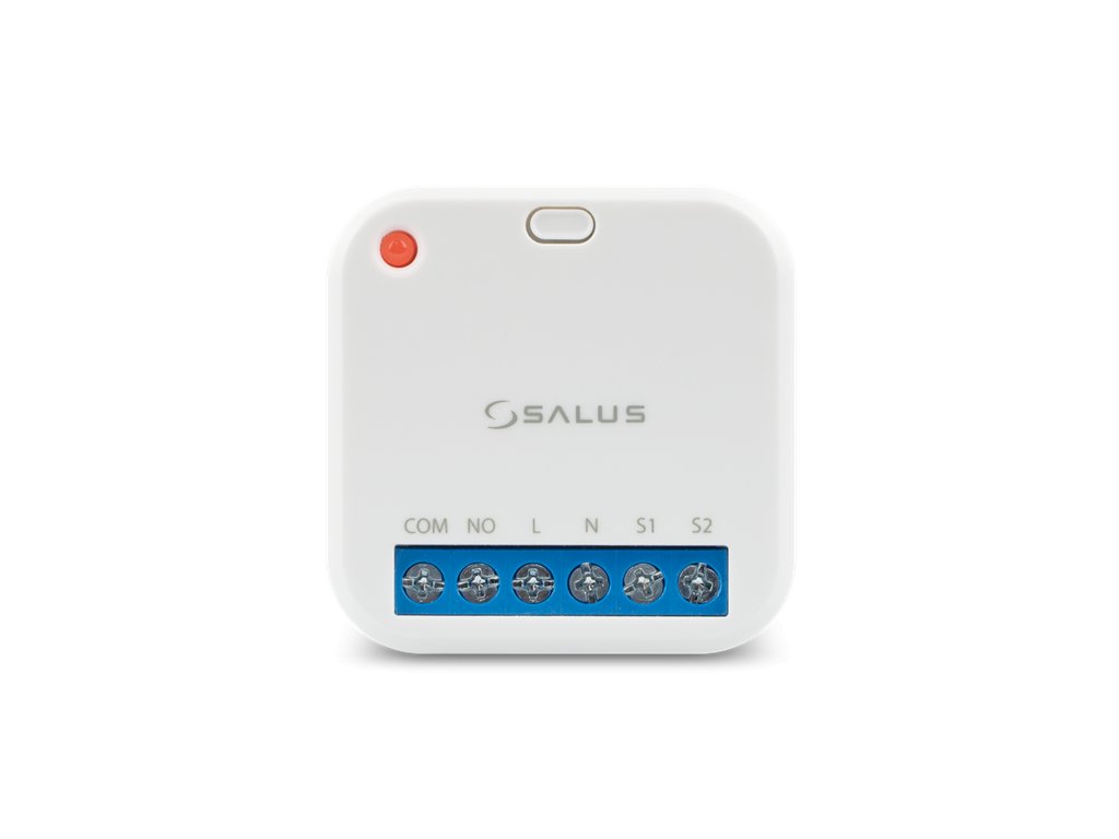 Inteligentní relé SR600 je spínací reléový produkt, který může být umístěn uvnitř elektroinstalační krabice nebo instalován s držákem přímo na stěnu a lze jej použít k zapnutí nebo vypnutí zařízení do maximálního zatížení 16A. Produkt musí být použit s univerzální bránou UGE600 a aplikací SALUS Smart Home. Základní vlastnosti:- dálkové spínání zařízení