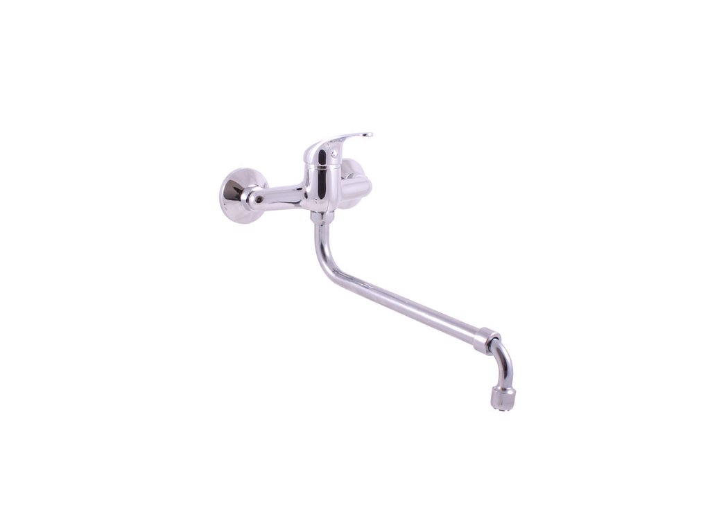 Vodovodní baterie dřezová nástěnná s kulatým teleskopickým ramínkem 290-480 mm.