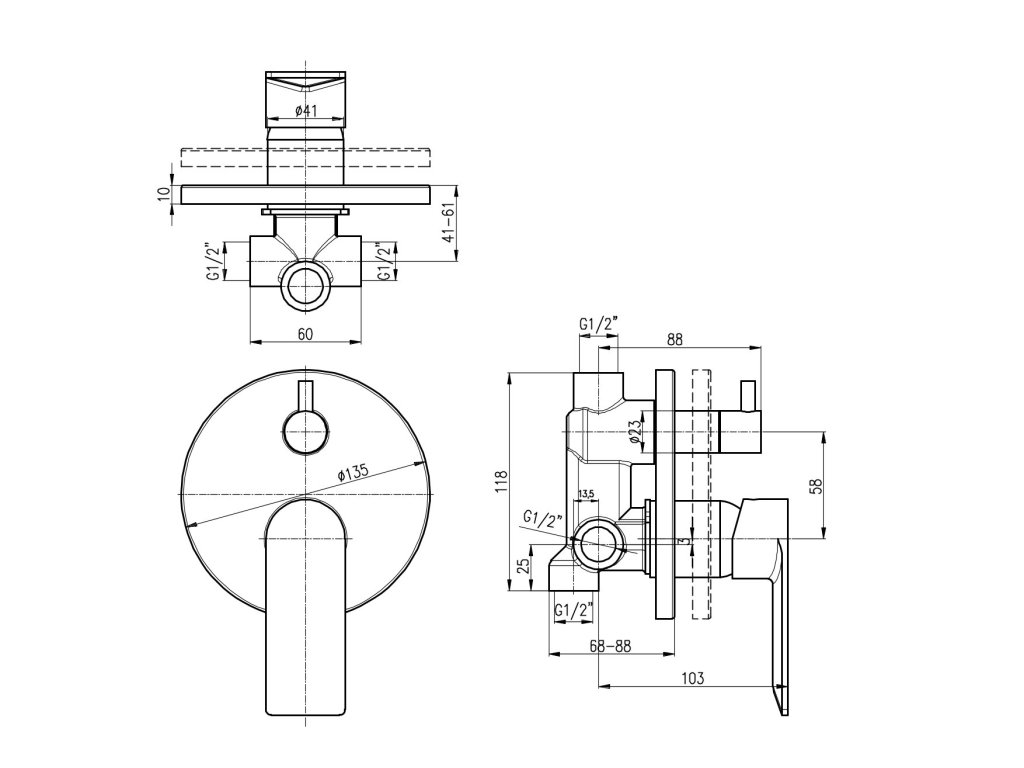 Tuto baterii můžete použít buď do sprchového koutu jako kombinaci hlavové a ruční sprchy a nebo k vaně jako kombinaci např. napouštění přepadem a ruční sprcha nebo výtokové ramínko a ruční sprcha.