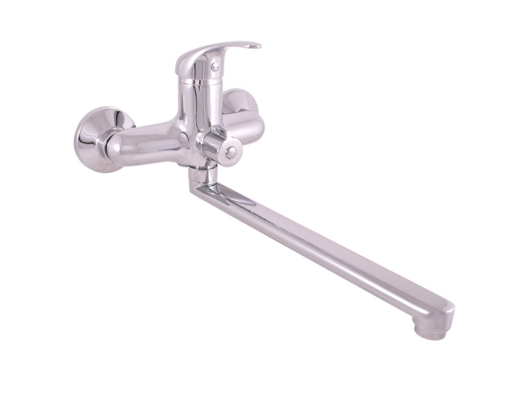 Vodovodní baterie pro vanu a umyvadlo nástěnná s plochým, otočným ramínkem.