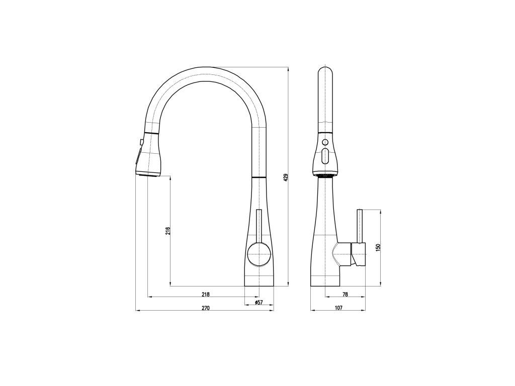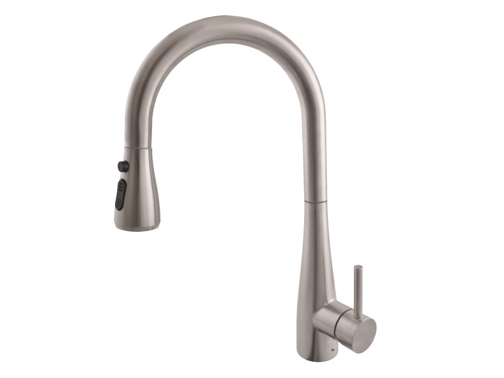 Vodovodní baterie dřezová stojánková s otočným ústím a vytahovací sprchou.