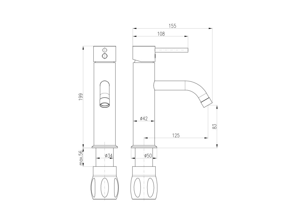 Vodovodní baterie umyvadlová stojánková bez otvírání odpadu.