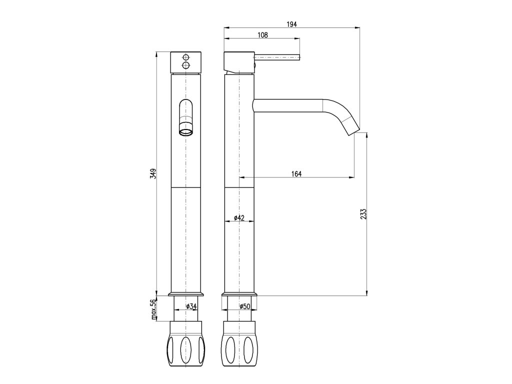 Vodovodní baterie umyvadlová stojánková, vysoká pro umyvadla na desku.