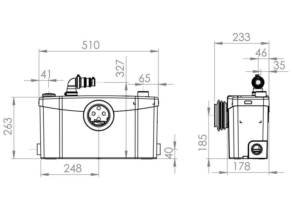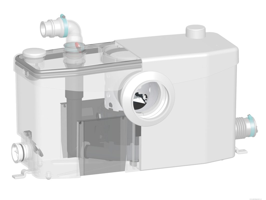 Saniplus Silence vyřeší WC i kompletní koupelnu. Velký objem jeho nádrže umožňuje současně odvádět velké objemy odpadní vody z více zařízení, jako WC, umyvadlo, sprcha a bidet.