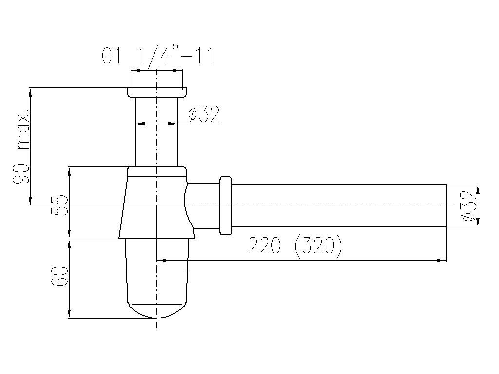 Sifon umyvadlový ø 32 ve tvaru "lahev".