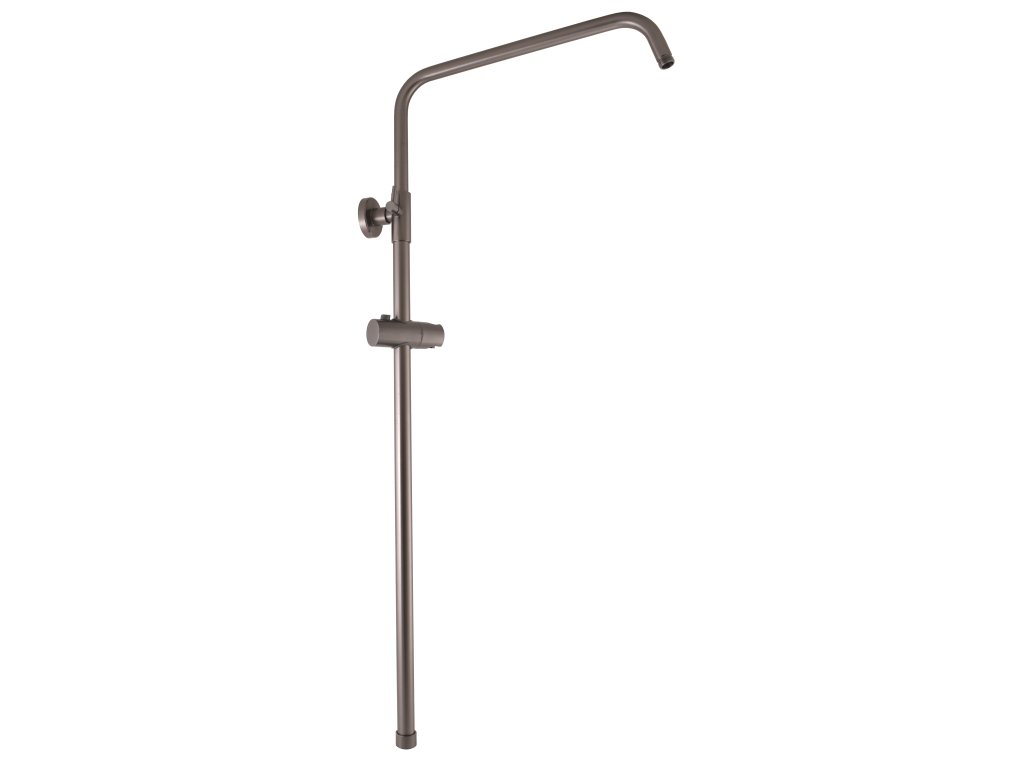 Teleskopická sprchová tyč k baterii s hlavovou a ruční sprchou, metal grey - kartáčovaná.