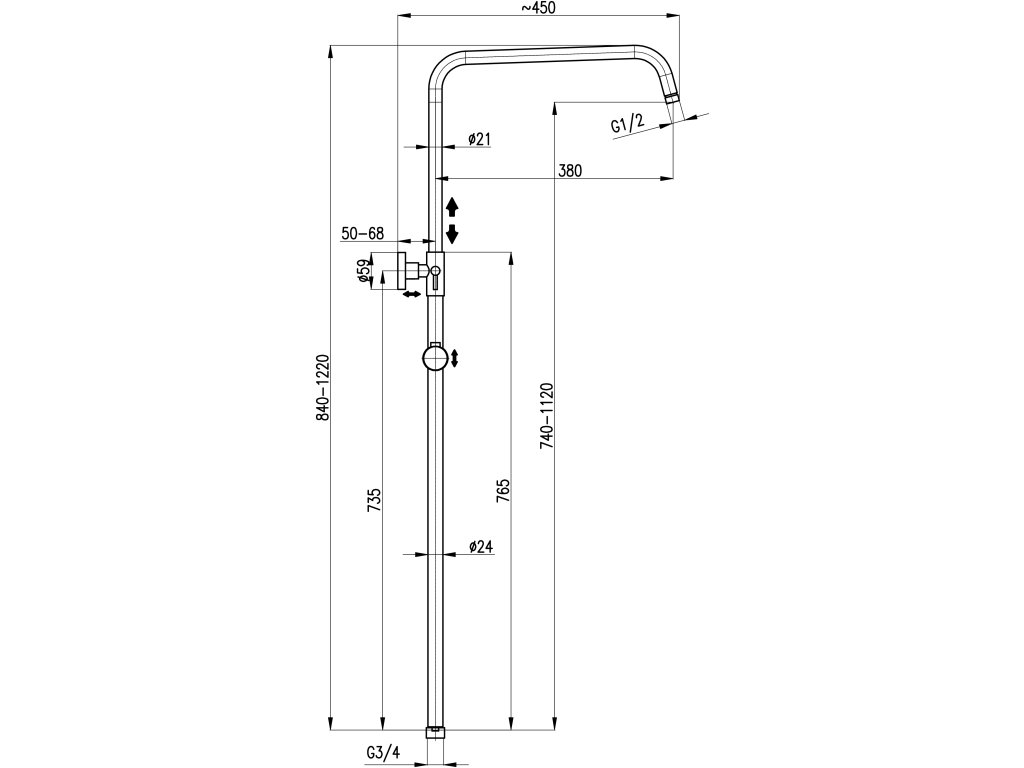 | Rozměr: | 1100-1700mm, ø 24mm |