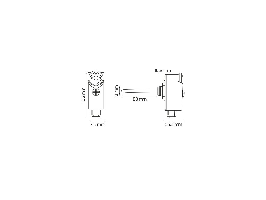 Mechanický jímkový termostat Jednoduchá instalace Přepínací kontakt